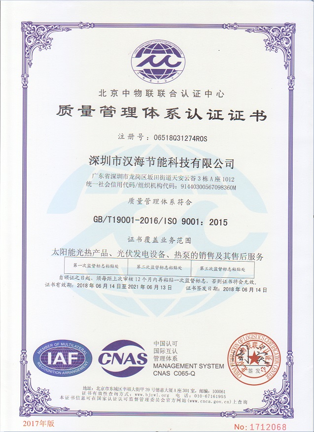 深圳市漢海節(jié)能科技有限公司成立于2011年,注冊資金6000萬元,總部設(shè)在深圳,是一家集設(shè)計、研發(fā)、施工于一體的專業(yè)化從事太陽能中央熱水工程、熱泵中央熱水工程、中央空調(diào)、光伏發(fā)電、水處理等新能源及節(jié)能環(huán)保行業(yè)的綜合服務(wù)商和工程商。在將近10年的發(fā)展歷程中,始終走在行業(yè)發(fā)展的前沿,是專業(yè)從事太陽能光熱、光伏,空氣源、太陽能熱水工程、水源熱泵,中央空調(diào),水處理產(chǎn)品的設(shè)計、安裝、售后服務(wù)為一體的高新技術(shù)企業(yè);是專業(yè)提供太陽能中央熱水工程、熱泵中央熱水工程、中央空調(diào)工程、光伏發(fā)電工程、水處理工程、太陽能熱水工程等全面解決方案的供應(yīng)商和工程商,產(chǎn)品涵蓋太陽能集熱器、空氣源熱泵、水源熱泵、中央空調(diào)、光伏組件、太陽能熱水工程等,是新能源的倡導(dǎo)者和推動者。公司成立以來,始終秉承“誠信、責(zé)任、專業(yè)、高效”的服務(wù)宗旨,以市場需求為導(dǎo)向,以為客戶創(chuàng)造價值為己任的精神,不斷開拓創(chuàng)新,通過多年的快速發(fā)展,公司綜合實力躍居行業(yè)前列。漢海擁有一支經(jīng)驗豐富、善打硬仗的專業(yè)高效團隊;擁有一批專業(yè)的高級工程師、中級工程師、二級建造師、造價工程師、電氣設(shè)計師、給排水設(shè)計師;擁有一批機電、安防、水、電等專業(yè)技術(shù)施工和售后人員,配備先進齊全,實力雄厚,技術(shù)領(lǐng)先。漢海以質(zhì)量樹信譽、以工藝立標(biāo)桿、以管理創(chuàng)效益、以服務(wù)得人心,工藝水平在業(yè)界獨樹一幟,成為行業(yè)模仿的典范。漢海承建的機電工程(設(shè)計、施工)涉及星級酒店、賓館、高檔辦公樓、花園別墅、住宅小區(qū)、學(xué)校、水療中心、工廠等各種類型的工程,工程項目遍布全國各地。漢海將致力于成為全球信賴的新能源綜合服務(wù)商,為客戶提供新能源的全方位解決方案。未來,漢海將依托國家政策,積極開拓粵港澳大灣區(qū)、中國特色社會主義先行示范區(qū)市場及“一帶一路”沿線國際市場,推動新能源的新輝煌。